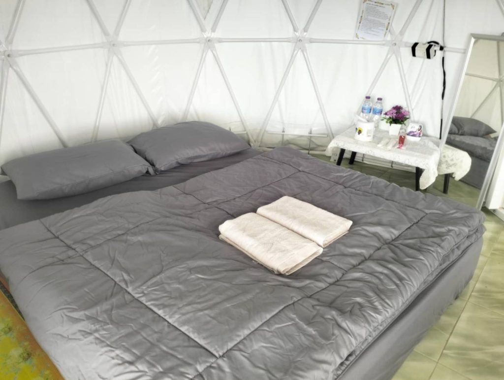 แบบโดม พักได้ 2 ท่าน มีห้องน้ำส่วนตัว มีน้ำอุ่น มีของใช้ให้