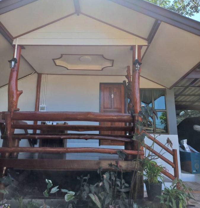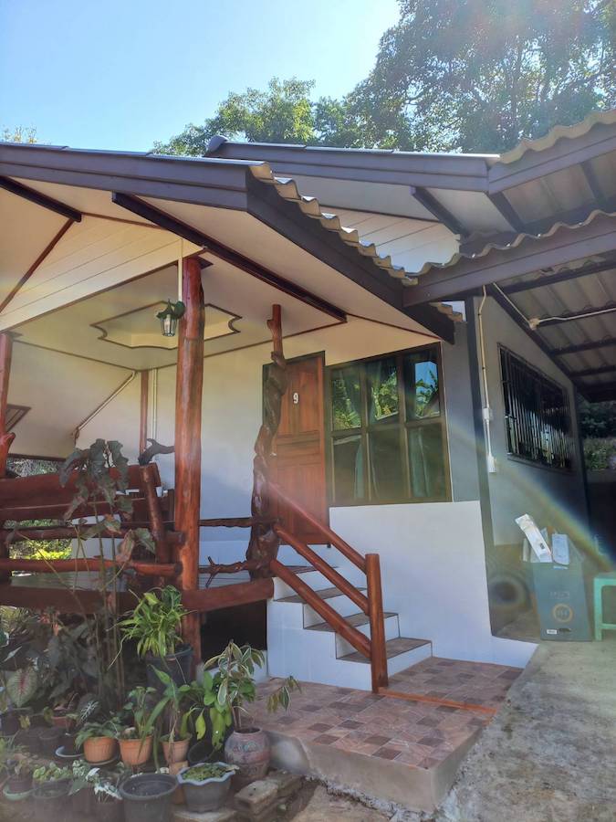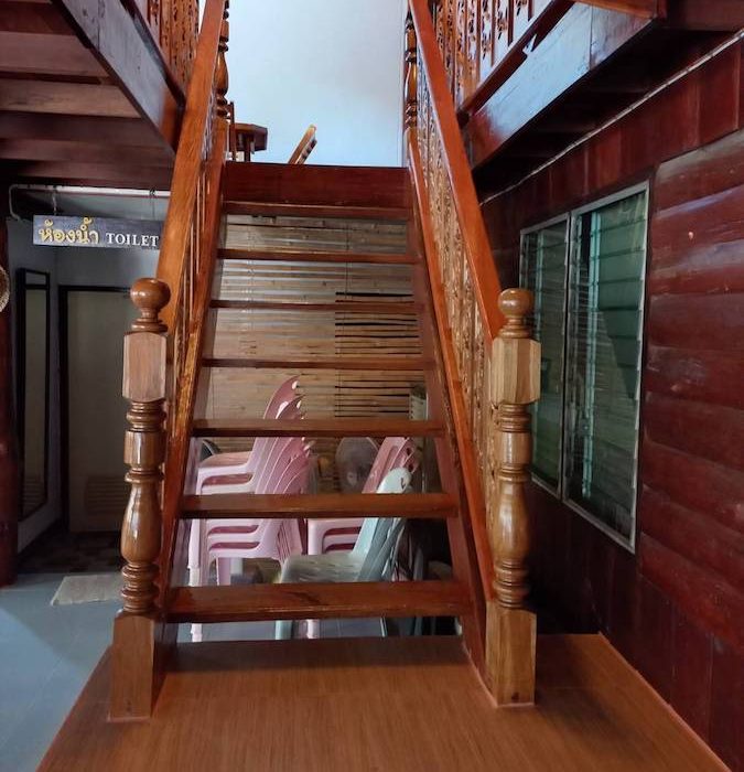 บ้านหลังใหญ่ชั้นบน มี 4 ห้อง พักได้ห้องละ 2-3 คน ห้องแอร์ ราคา 600 บาท/คืน