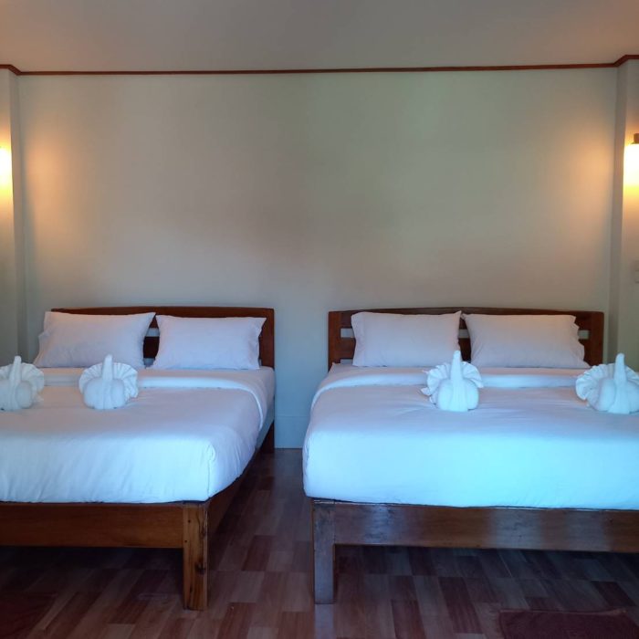 บ้านหลังใหญ่ชั้นล่าง มี 2 ห้อง พักได้ห้องละ 2-3 คน ห้องแอร์ ราคา 600 บาท/คืน ทุกห้องมีห้องน้ำในตัว