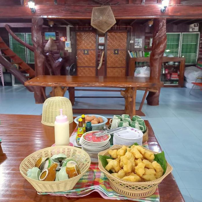 • นอกจากห้องพักอันสะดวกสบายแล้ว คุณยังจะได้ชิมอาหารท้องถิ่นรสเลิศโดยฝีมือแม่เป้าและทีมงาน ที่จะดูแลเหมือนบ้านญาติในต่างจังหวัด เป็นกันเอง และชวนให้ติดใจ