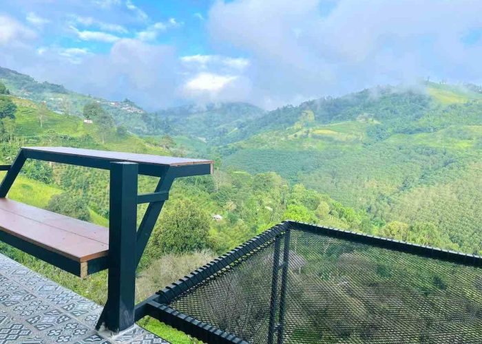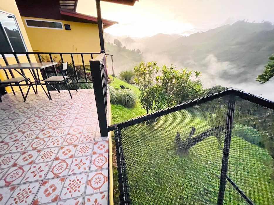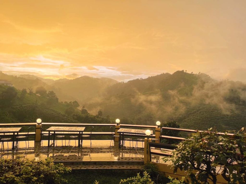 ระเบียงกว้างมาก มองเห็นวิวไร่ชาและชมพระอาทิตย์ตกได้