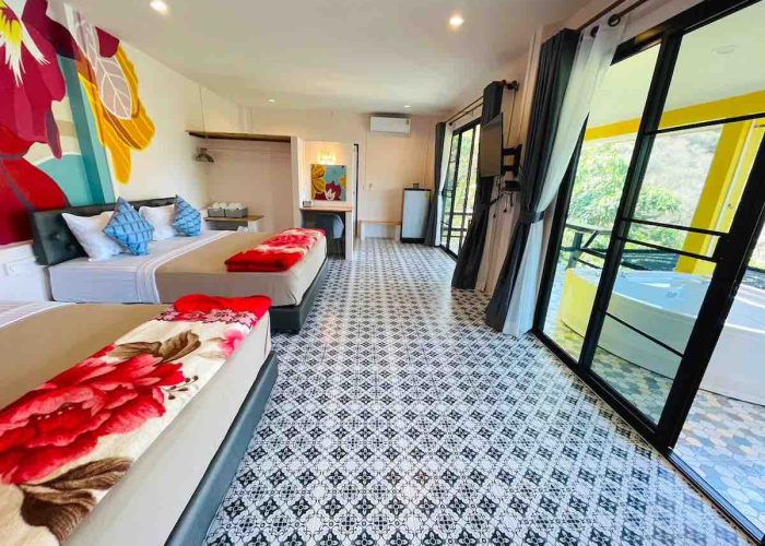 A1 และ A2 ราคา 1,290 บาท/หลัง/คืน เตียงเสริม 500 บาท (เสริมได้ 1 คน) ราคารวมอาหารเช้าแล้ว