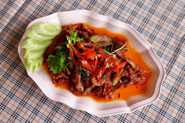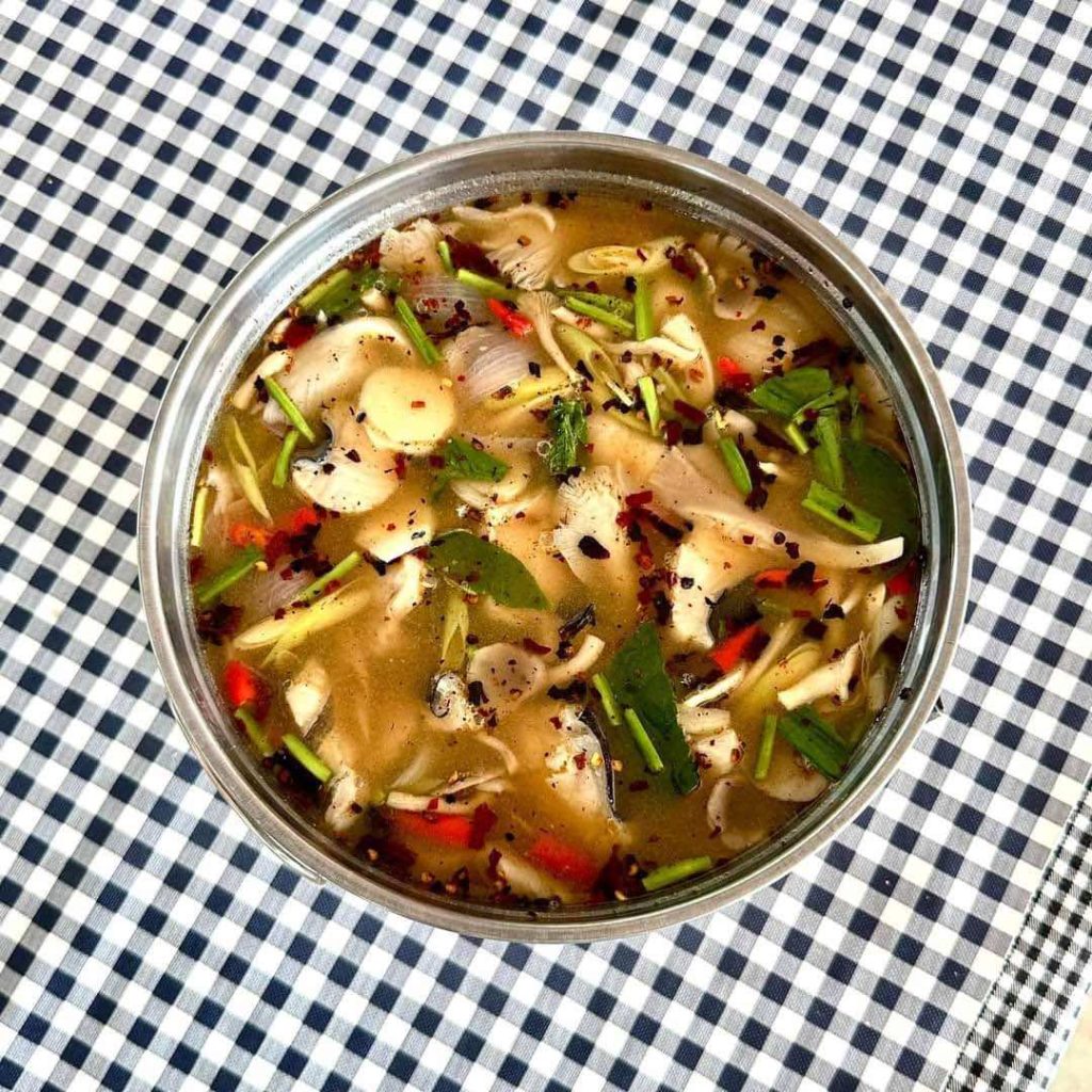 - ต้มยำปลาคัง เนื้อปลาแล่เป็นชิ้น ไม่ติดก้าง ใส่กะเพราและโหระพาเพิ่มความหอม พริกคั่วเอง รสจัดจ้าน