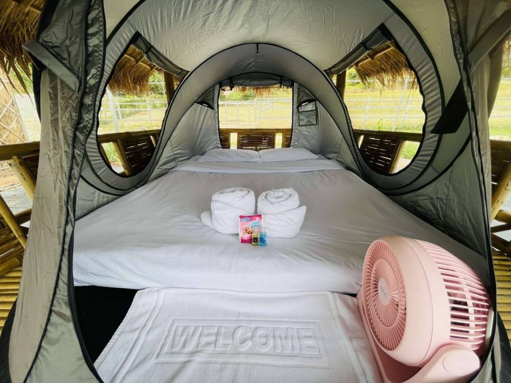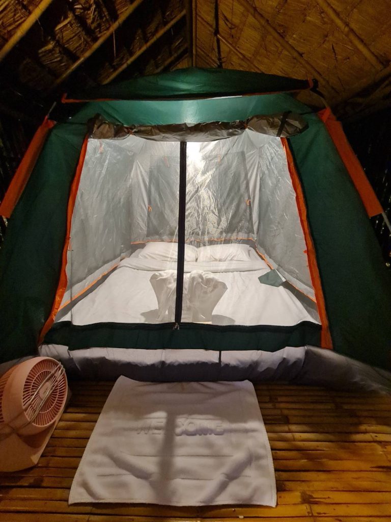 เต็นท์ซุ้มไม้ไผ่ เป็นเต็นท์วางอยู่บนซุ้มไม้ไผ่ยกพื้น ที่นอนขนาด 5 ฟุต พร้อมเครื่องนอนและไฟฟ้า ห้องน้ำรวม จำนวน 21 หลัง พักได้เต็นท์ละ 2 คน